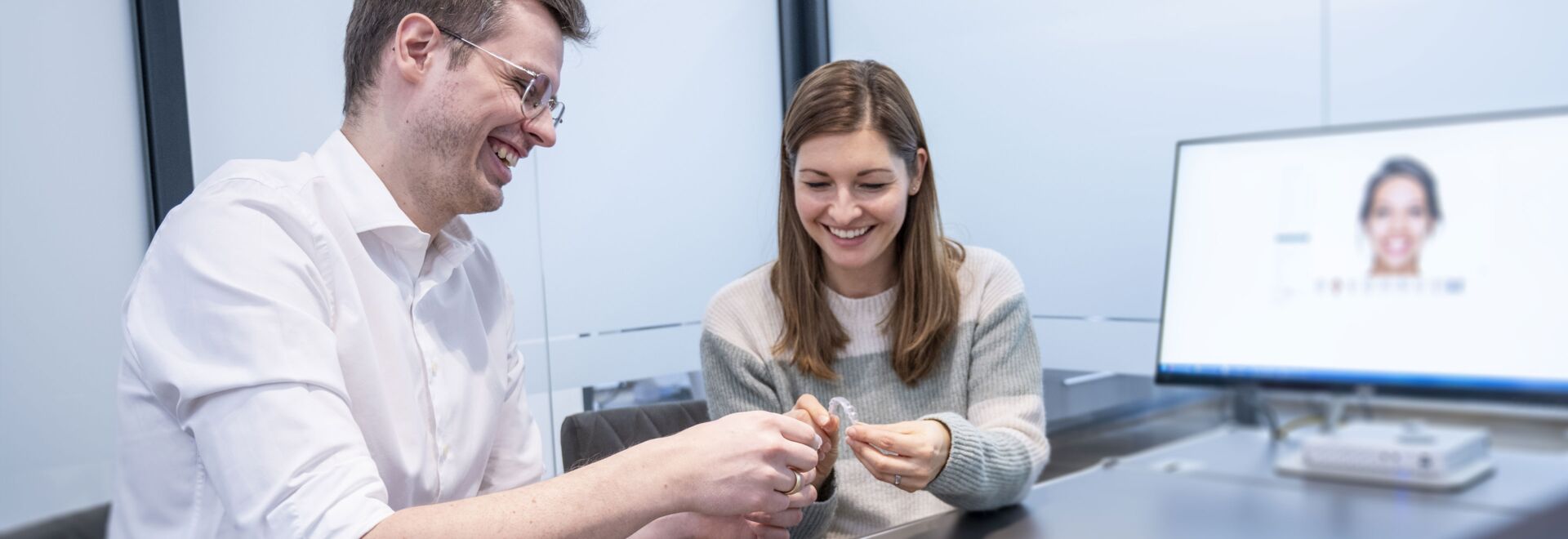 Die Erwachsenenbehandlung ist einer unserer Schwerpunkte, da uns allgemein an effektiven und ästhetischen Wegen für die Korrektur von schiefen Zähnen gelegen ist. Häufig stellen auch besondere Fragestellungen, beispielsweise wie sich die Zahnspange auf den Beruf auswirken könnte, einen wichtigen Aspekt bei der Entscheidung für oder gegen eine Therapieform dar. Gerne beraten wir Sie diesbezüglich bei einem ersten Termin.